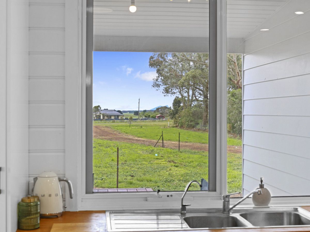 The cottage’s exterior combines ethically sourced yellow stringy bark board and batten cladding with Colorbond corrugated iron in woodland grey tones. This thoughtful blend of materials provides both durability and a natural aesthetic, which is further enhanced by a private, natural garden surrounding the home.