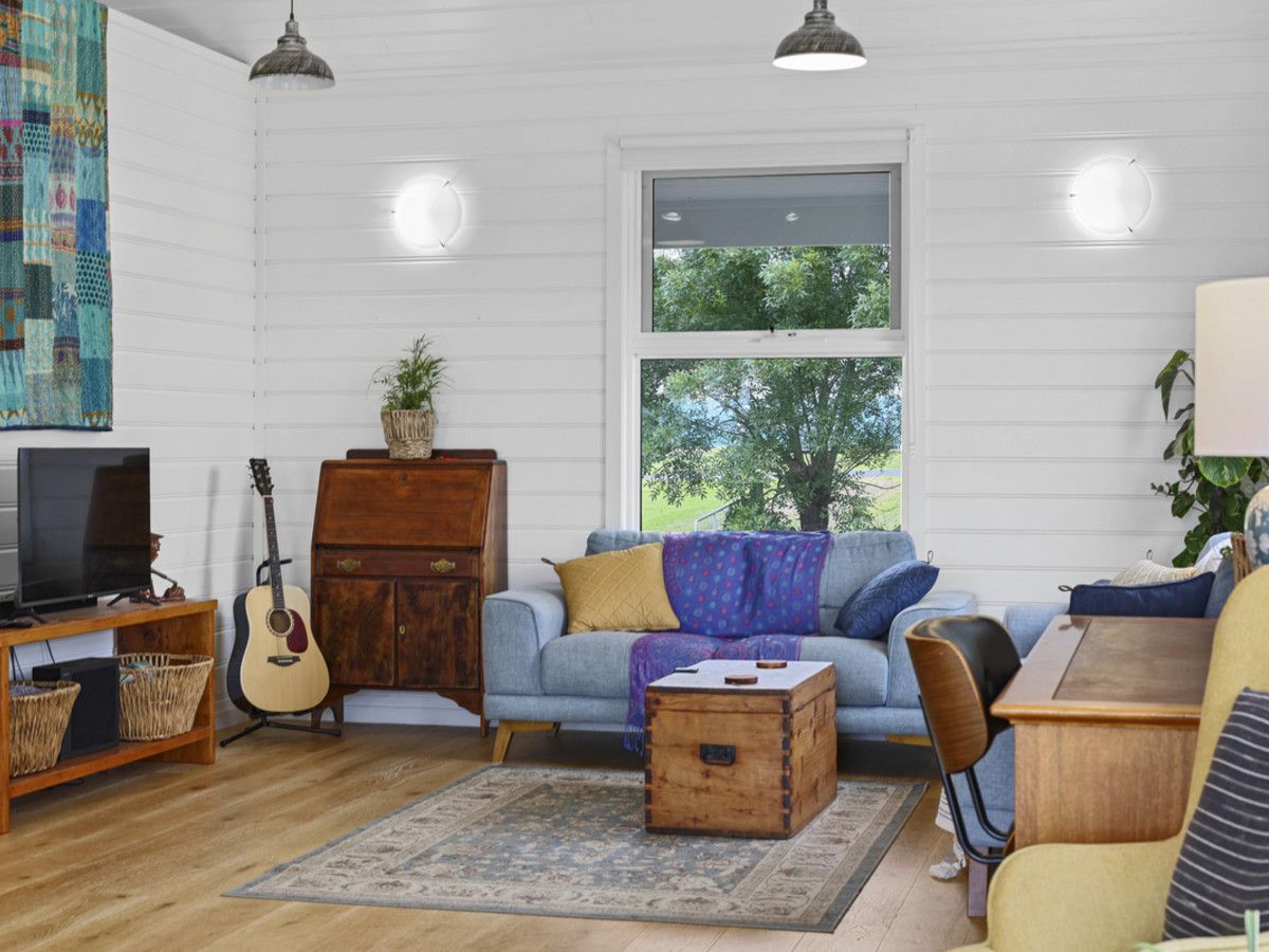 Timber multi-fold doors open onto a second-storey deck, providing panoramic views through the available corridor and overlooking the bush-shrouded creek below. Highlight windows facing north are strategically placed to let winter sunshine flood into the open living areas during the colder months, while detachable waterproof shade sails offer protection from the intense summer sun.