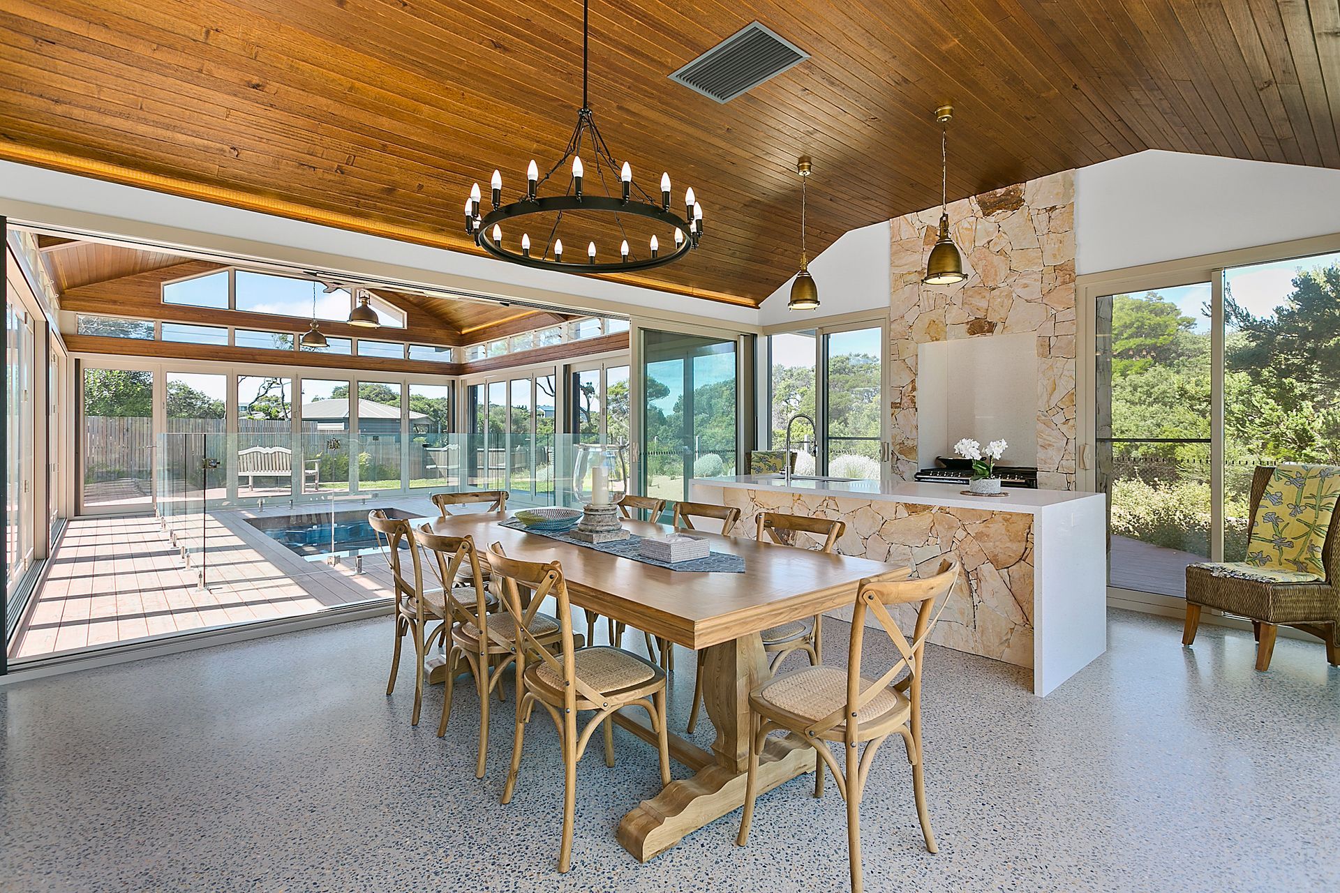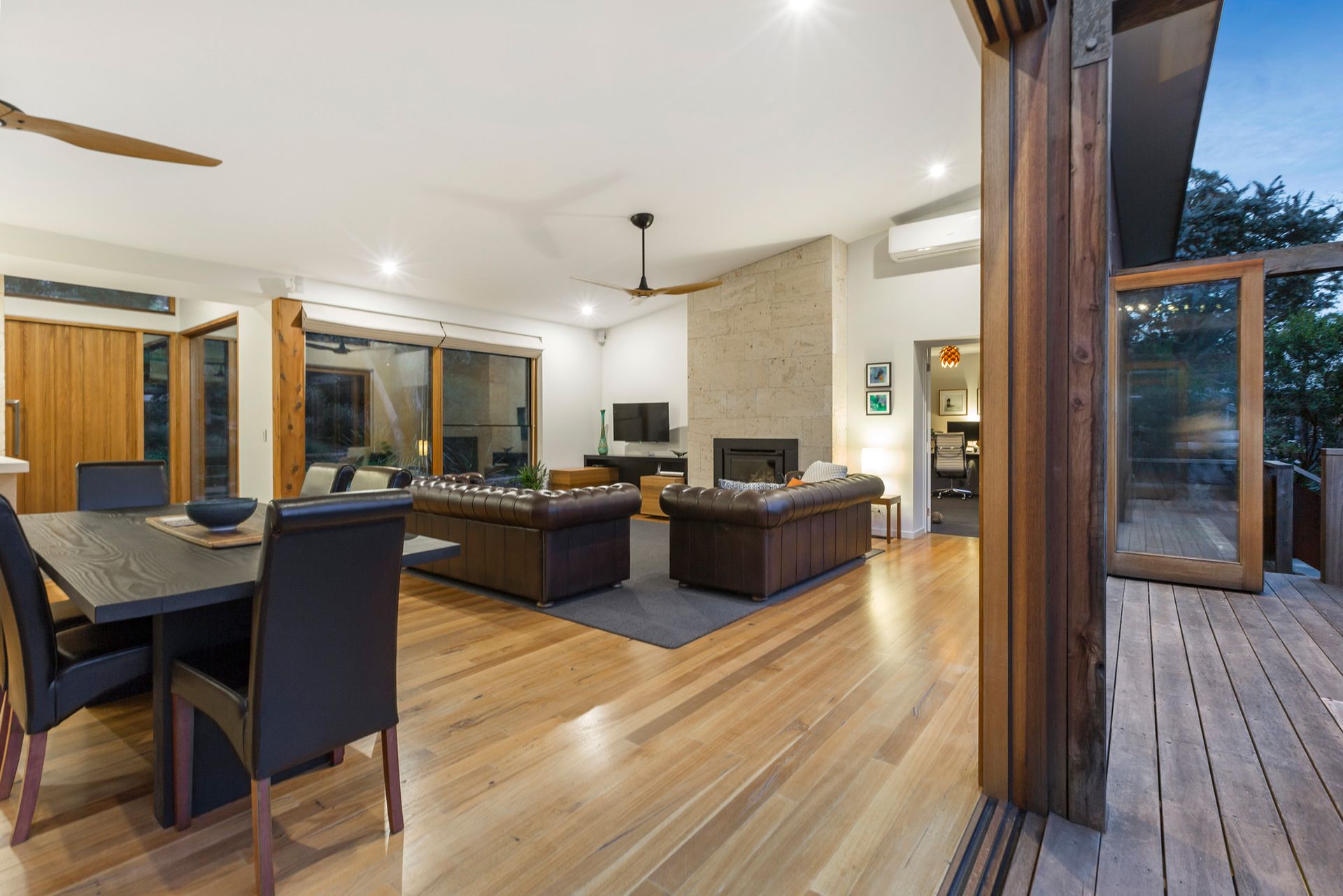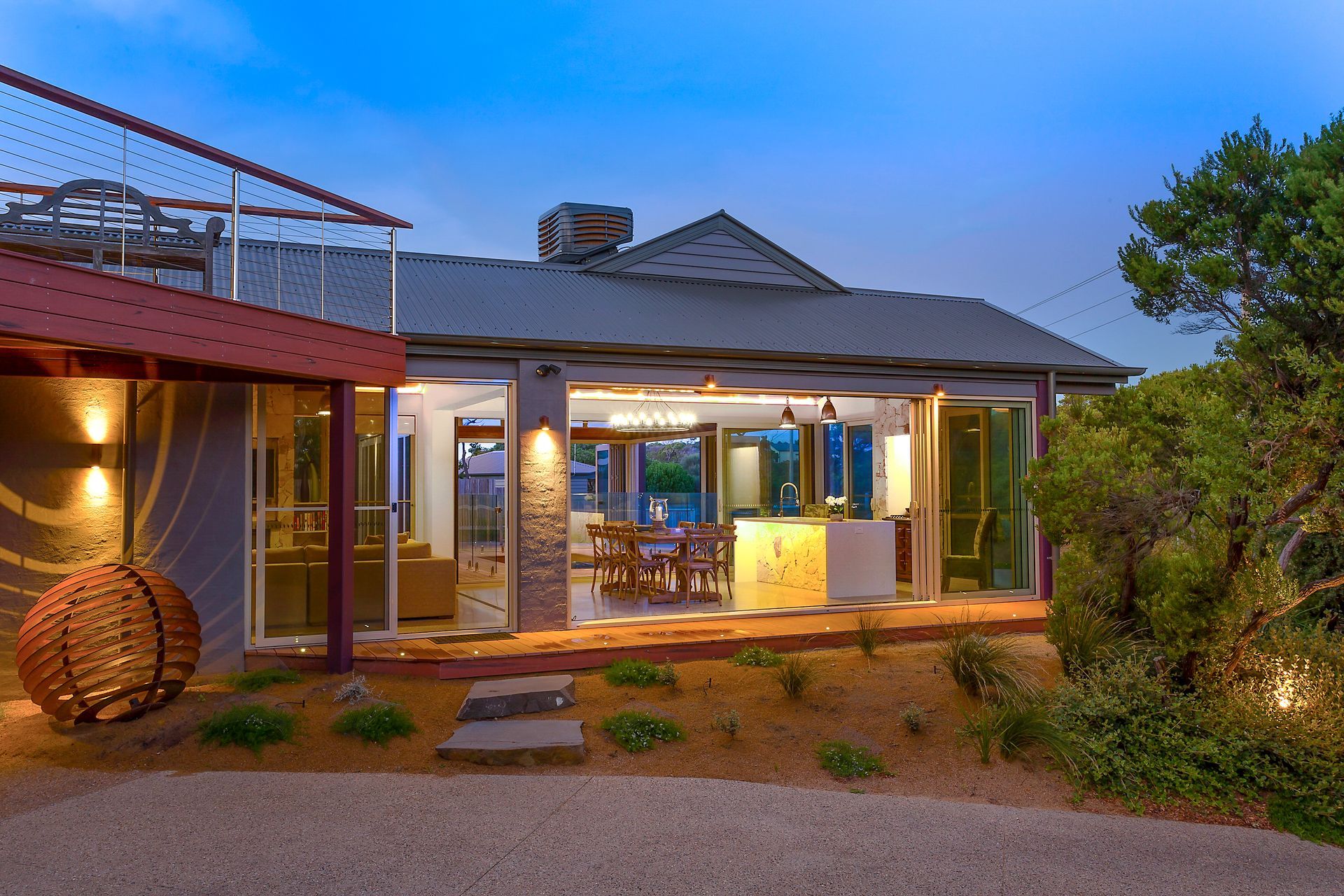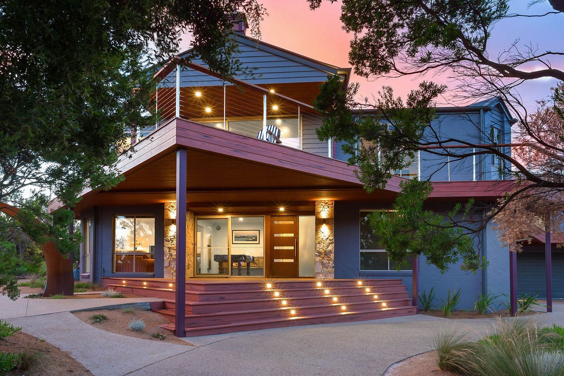 Contemporary Nineties make over by the beach with beautiful views of the Portsea village and back beach dunes. Set on a large block with low maintenance indigenous garden new exterior contemporary cladding that will stand the test of time.