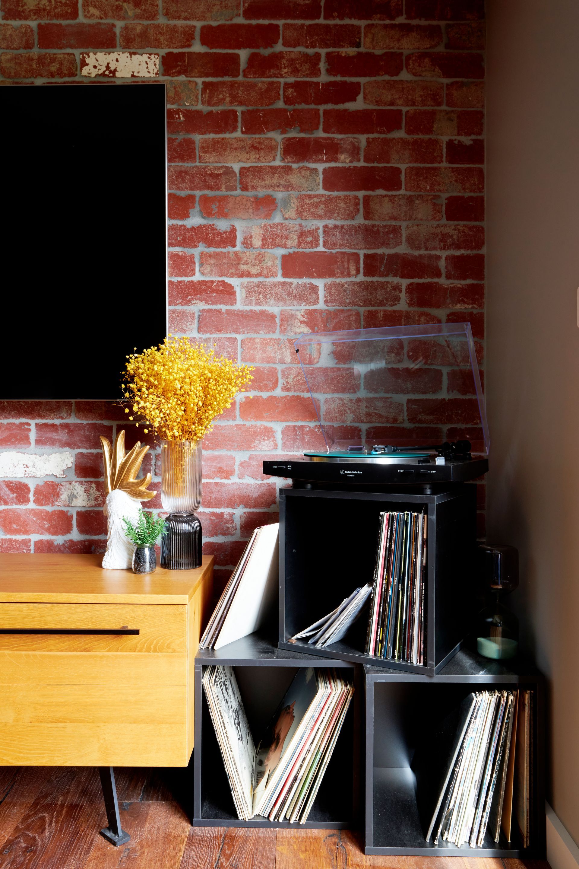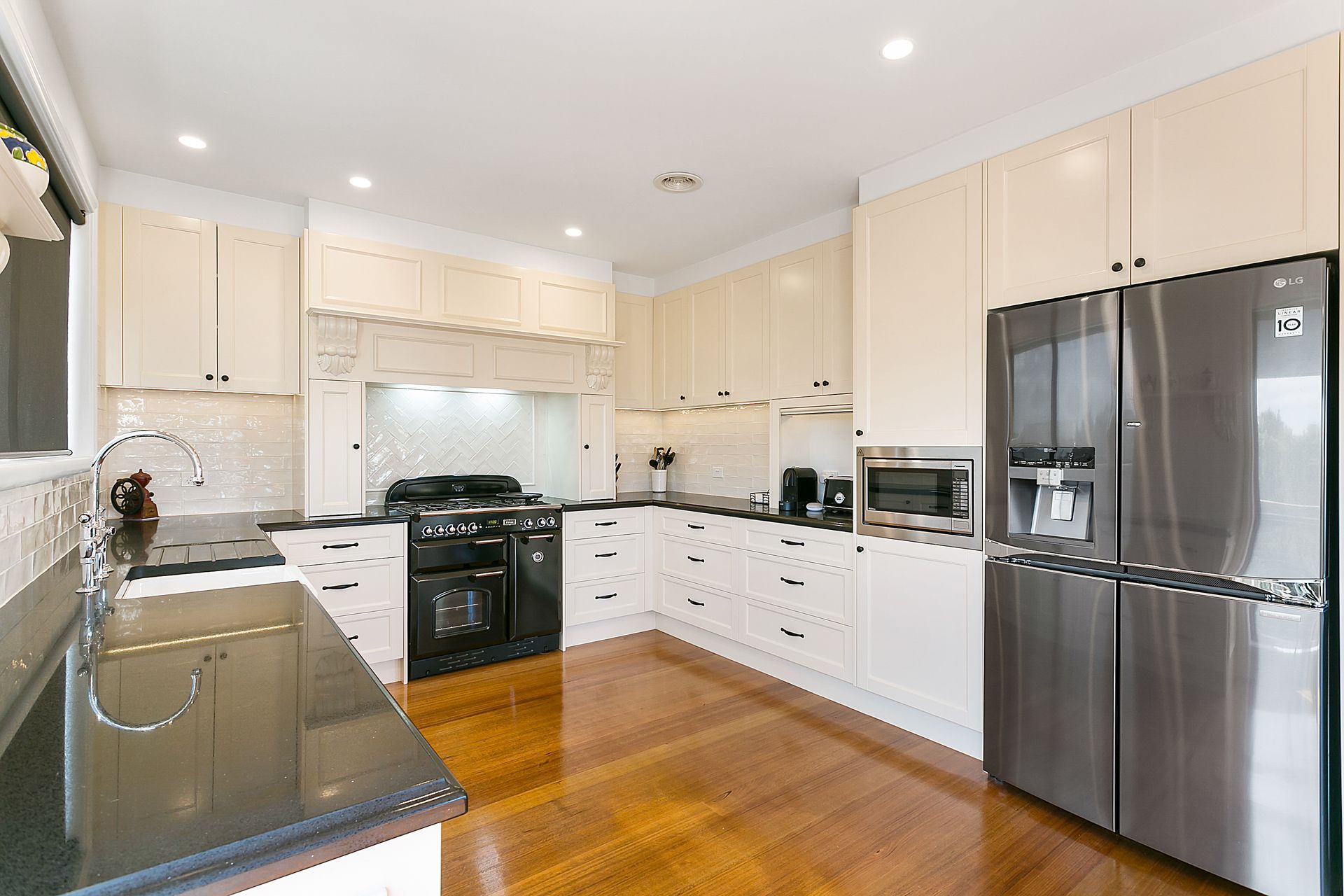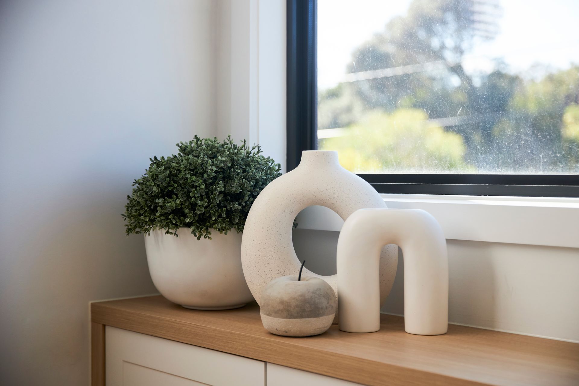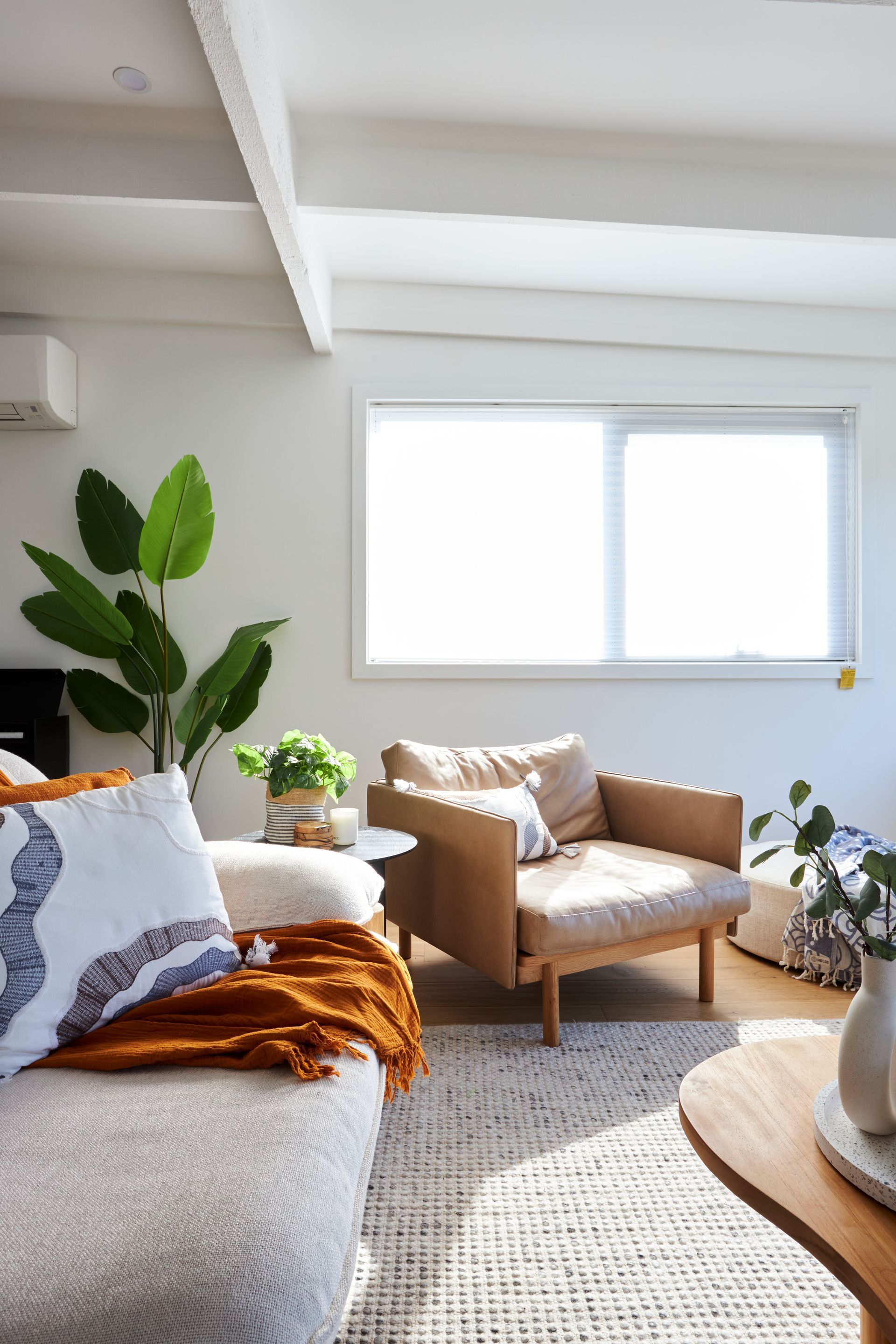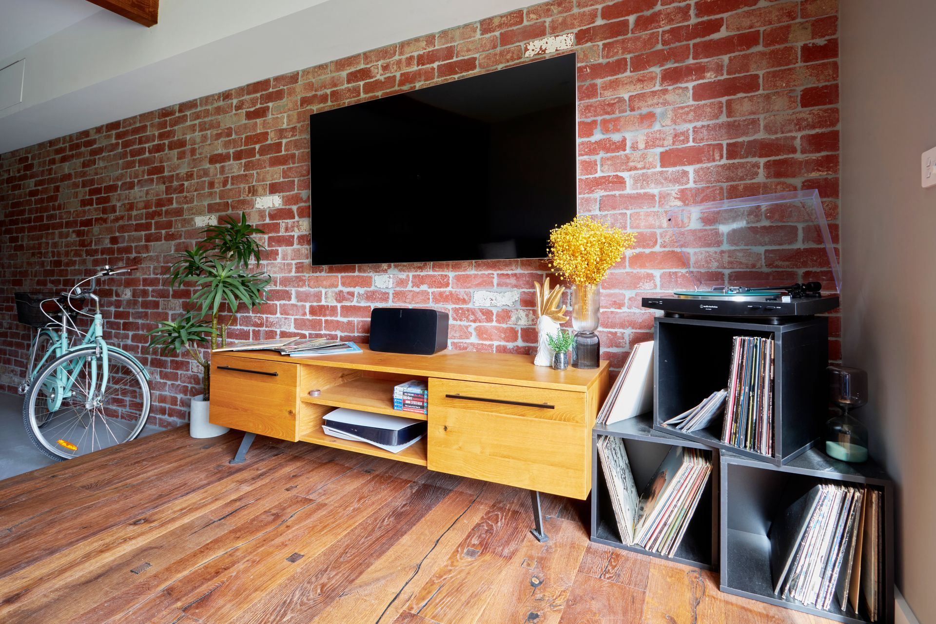 Split level living with polished timber floors and light walls. Windows provide selected views of the natural garden and norther tree top views to Port Phillip bay. The exterior features timber shiplap finished in natural tung oil.