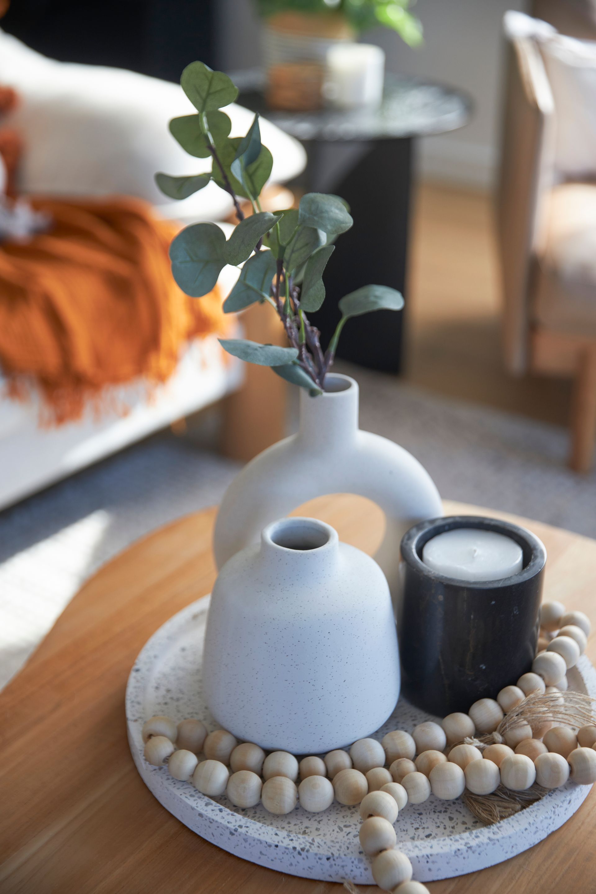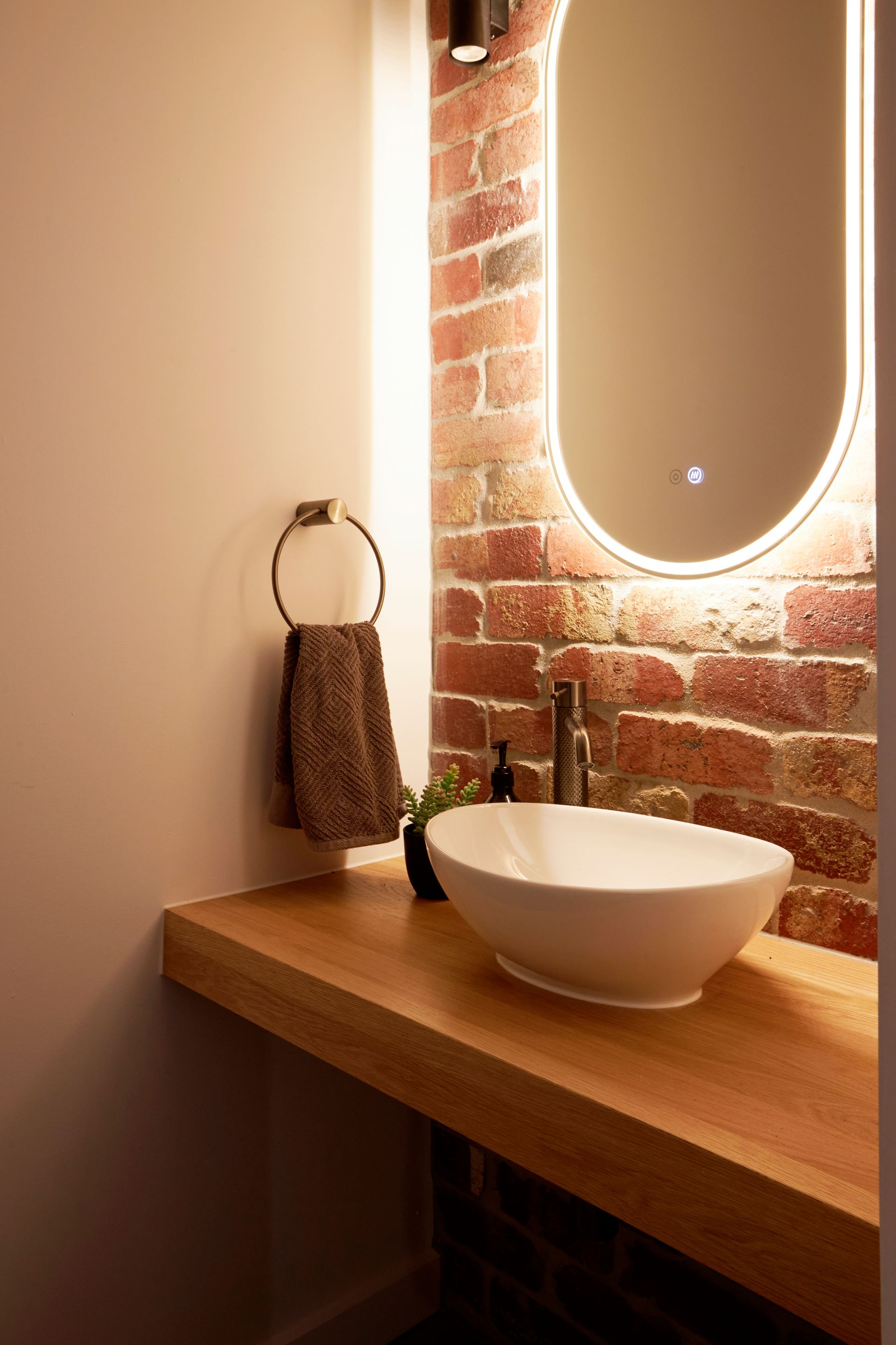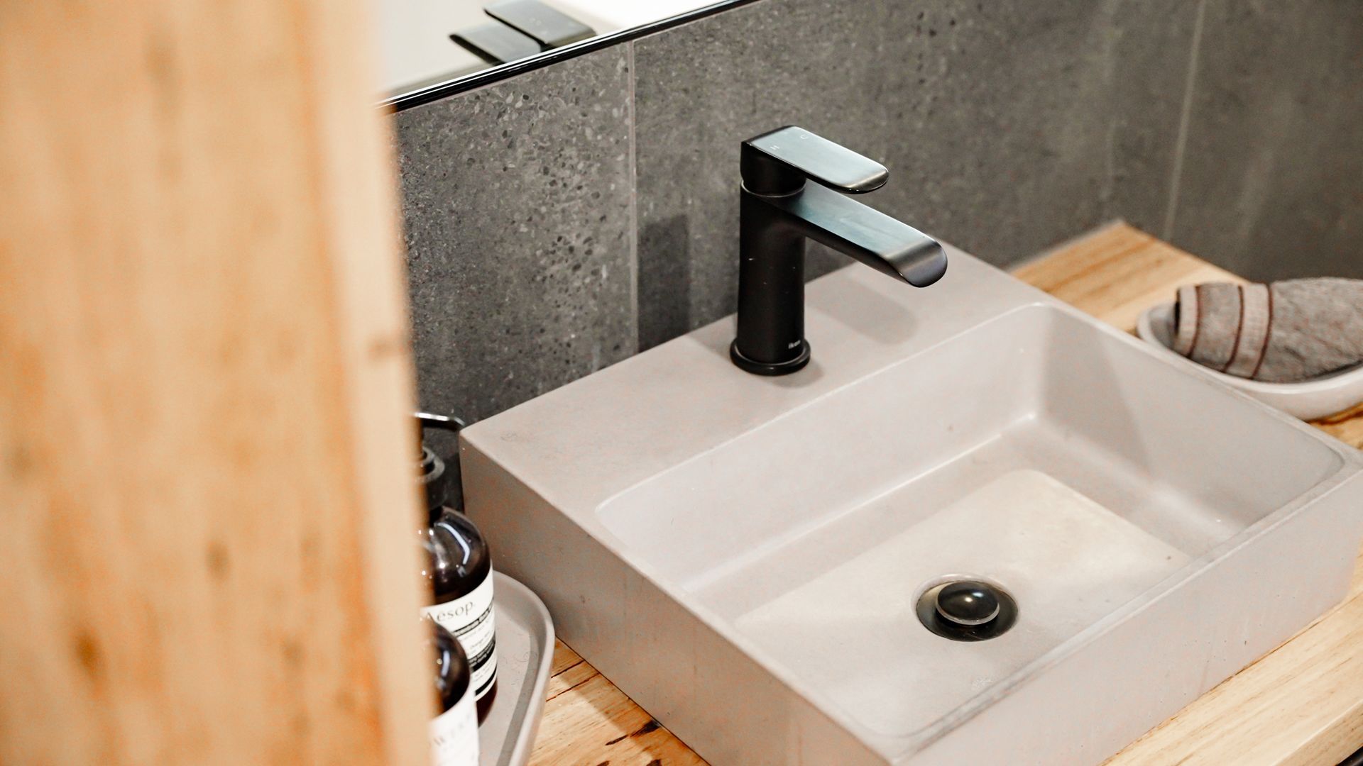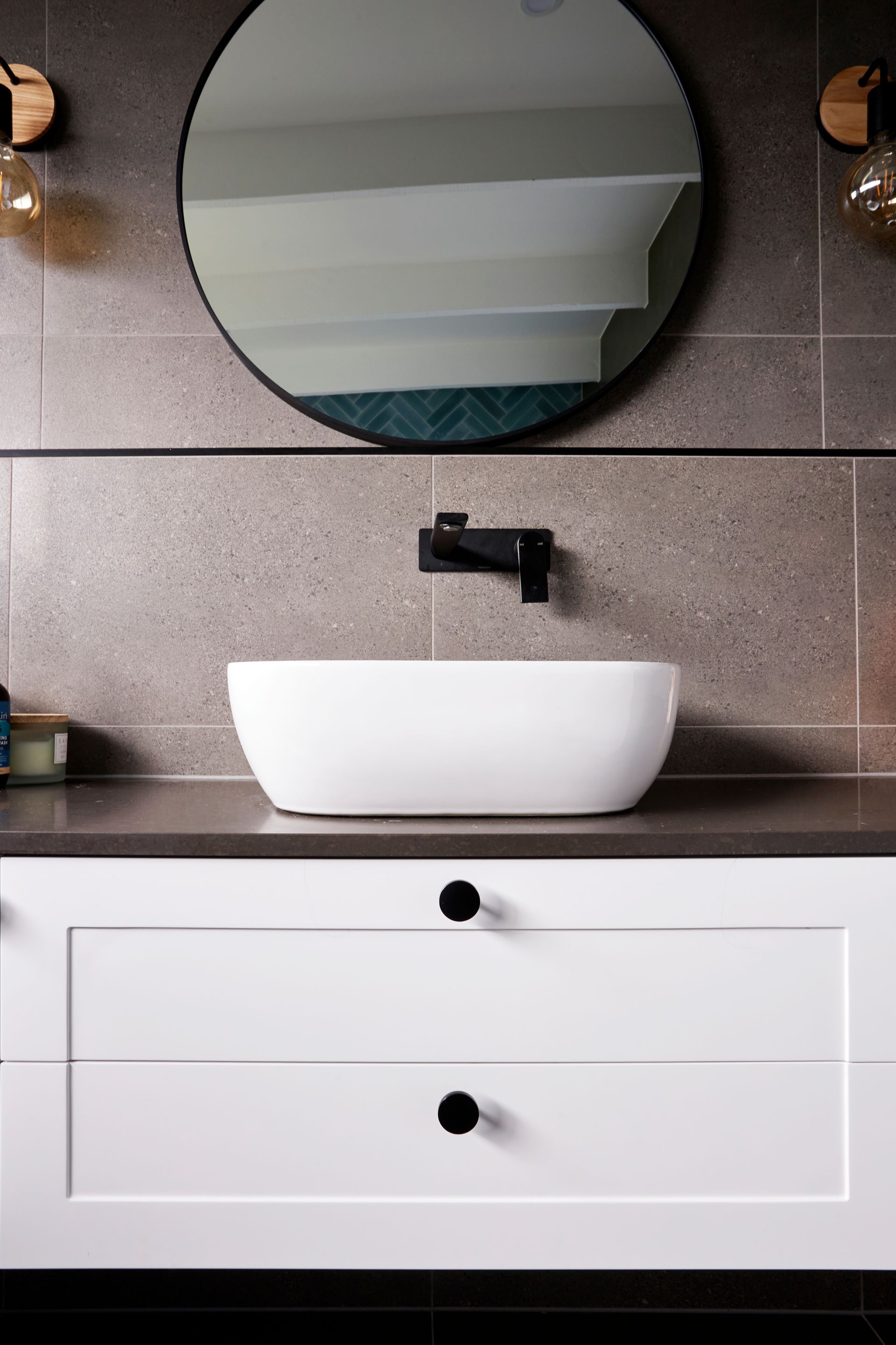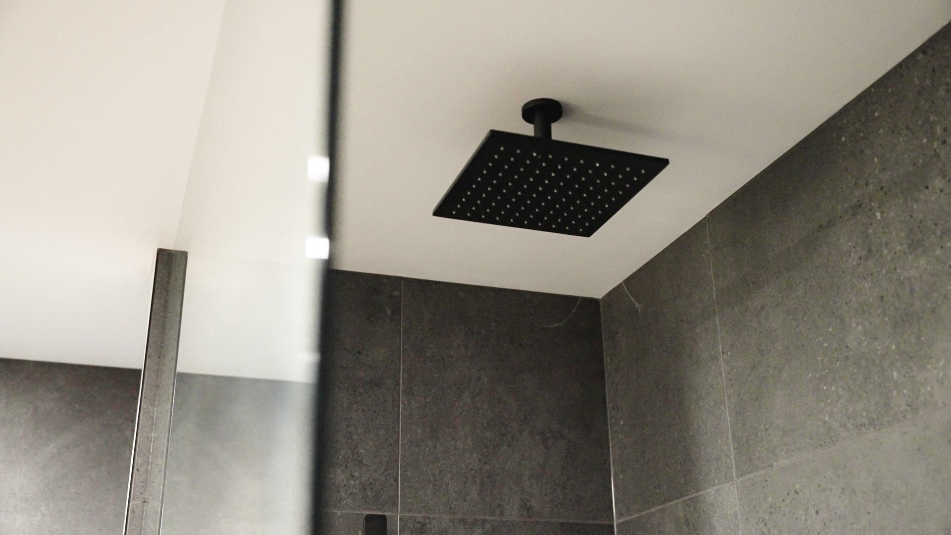 Beach house make over replacing tired asbestos walls and reconfiguring existing spaces to create a light filled modern lifestyle home. Some space was stolen from the upper story balcony to accomodate a luxury ensuite accessed from master bedroom via sliding barn doors. Morning light spills in to the ensuite through high windows.