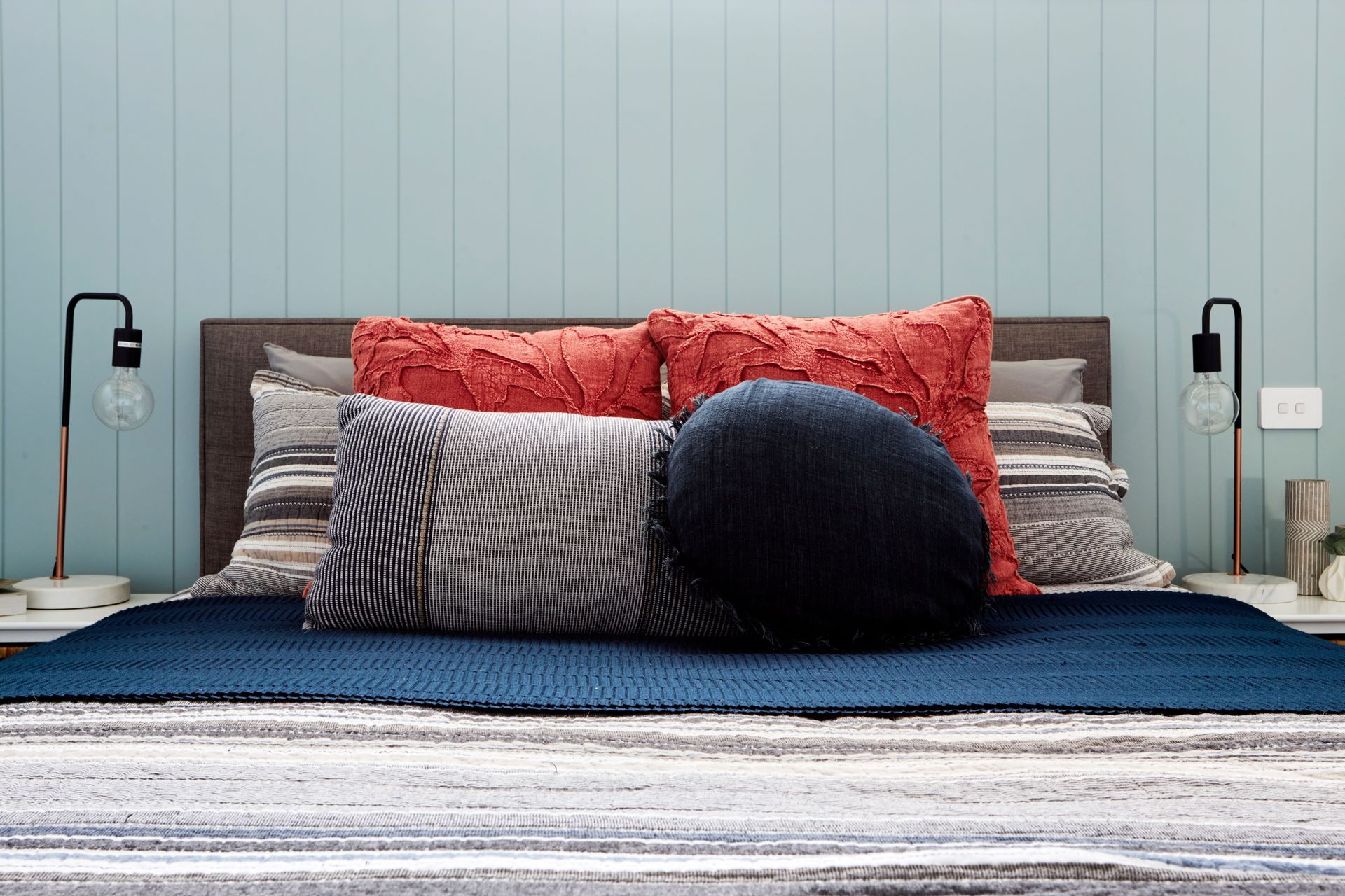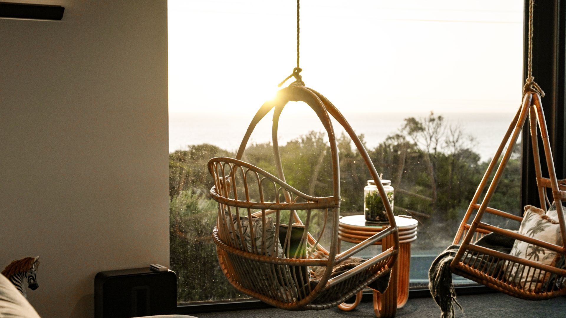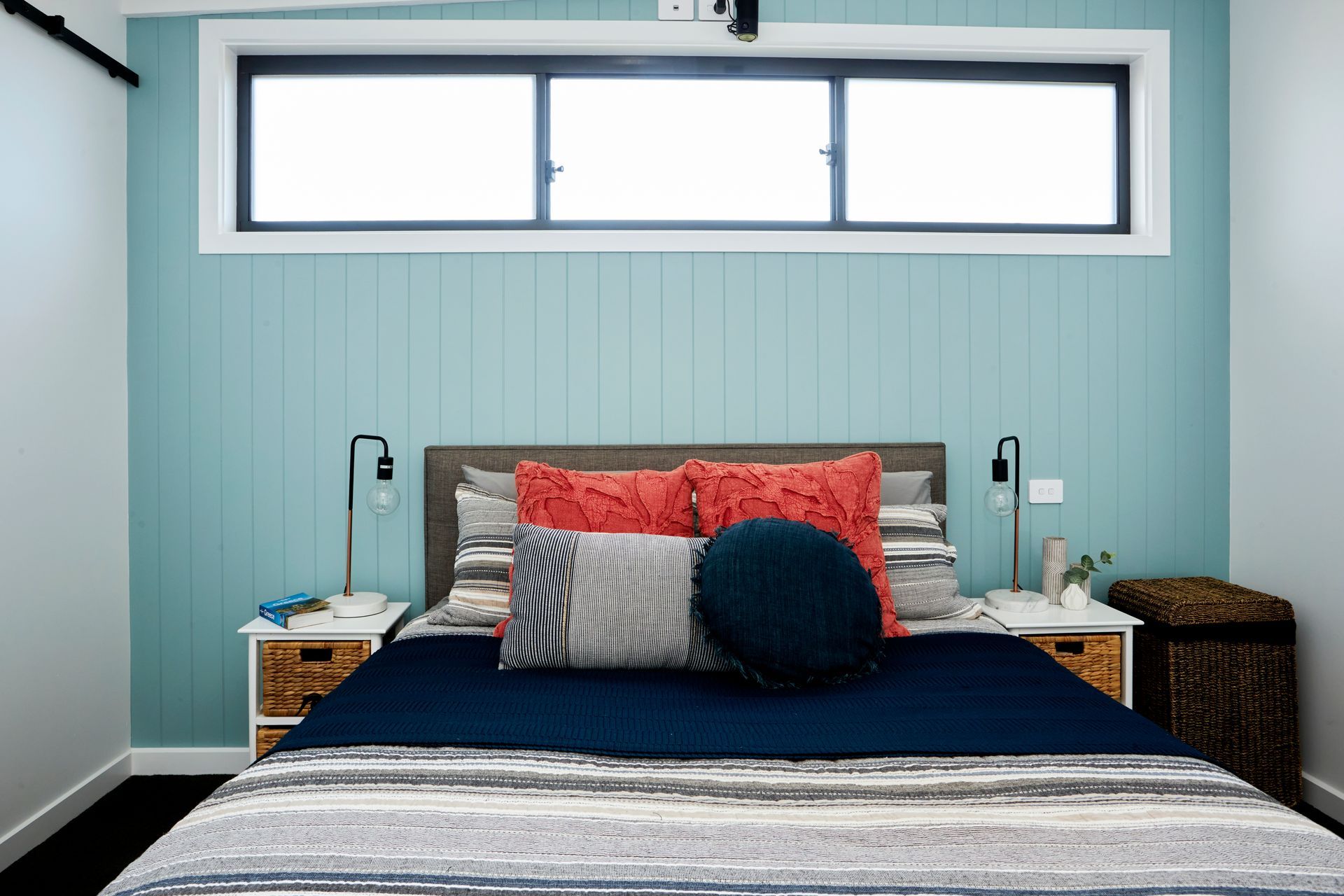 A beautiful Country cottage by the sea with a Bohemian vibe and eclectic interior accents. Ethically sourced yellow stringy bark board and batten cladding, mixed with Colorbond corrugated iron in natural woodland grey tones, are complimented by the private natural garden. Polished wood floors, soothing green interior walls with stained ply to the raked ceilings add to the relaxing interior feel, with antique doors linking rooms. Double timber French doors open out to the natural garden linking indoors with outdoors