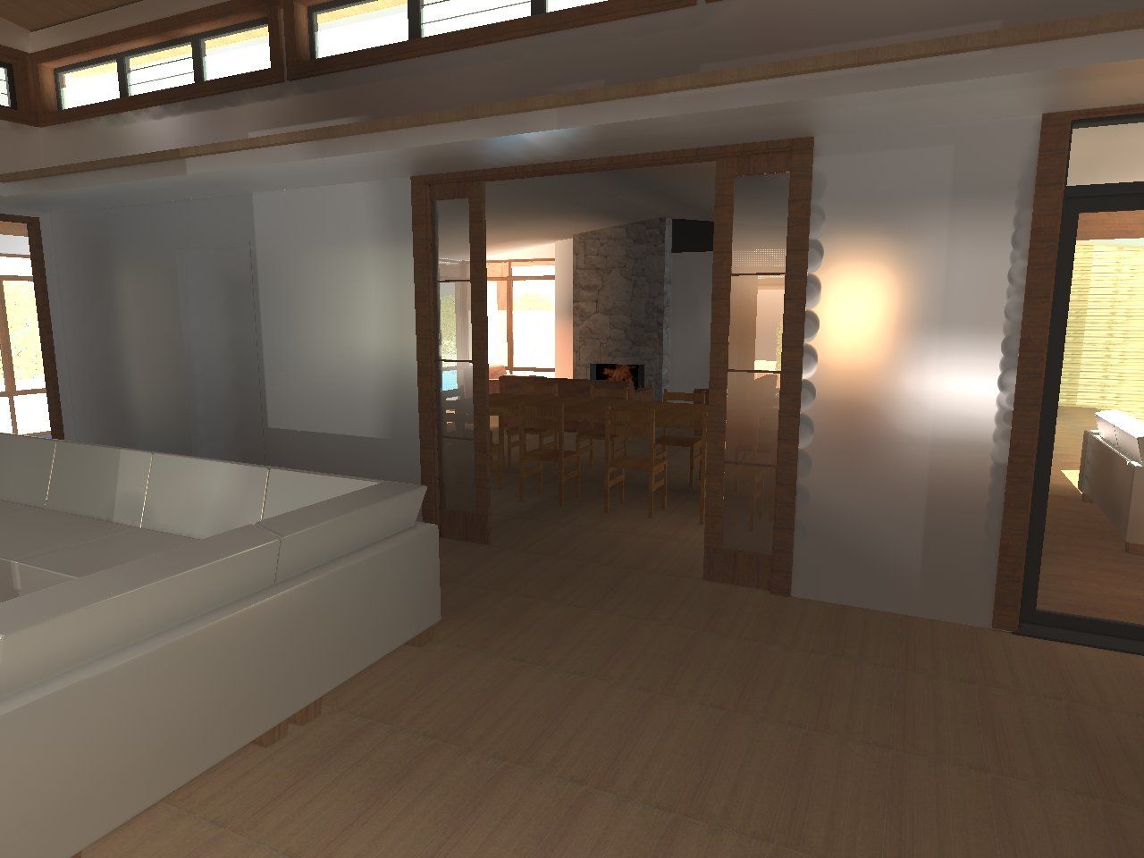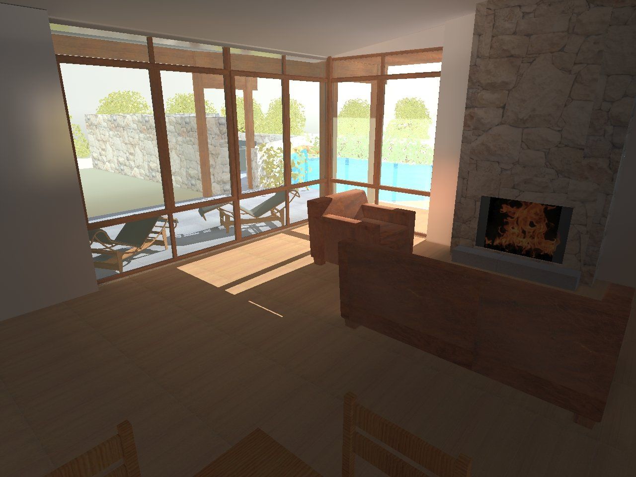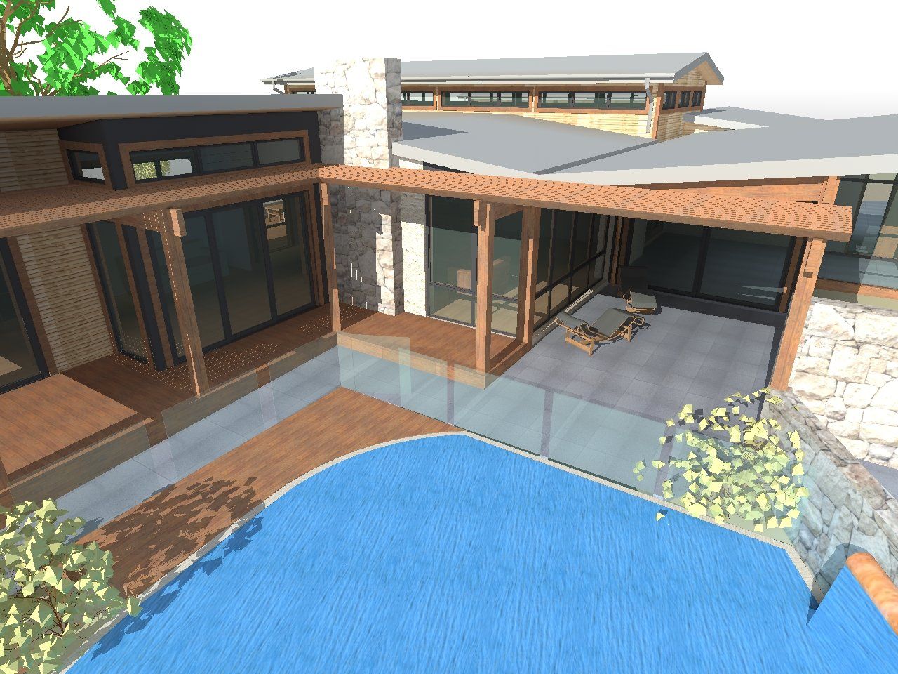This is a Passive Solar Project using part concrete floor and passive air conditioning to dramatically reduce the need for artificial heating and cooling. The owner reported that the summer air temperature was reduced by 10 degrees and in winter they didn’t need to use the artificial heating hardly at all. The split-level style of architecture provides functionality and beauty in the design.