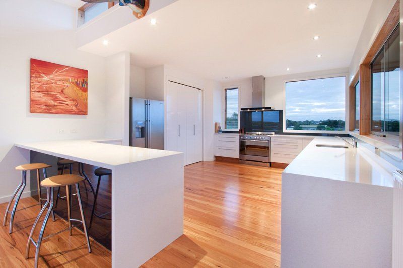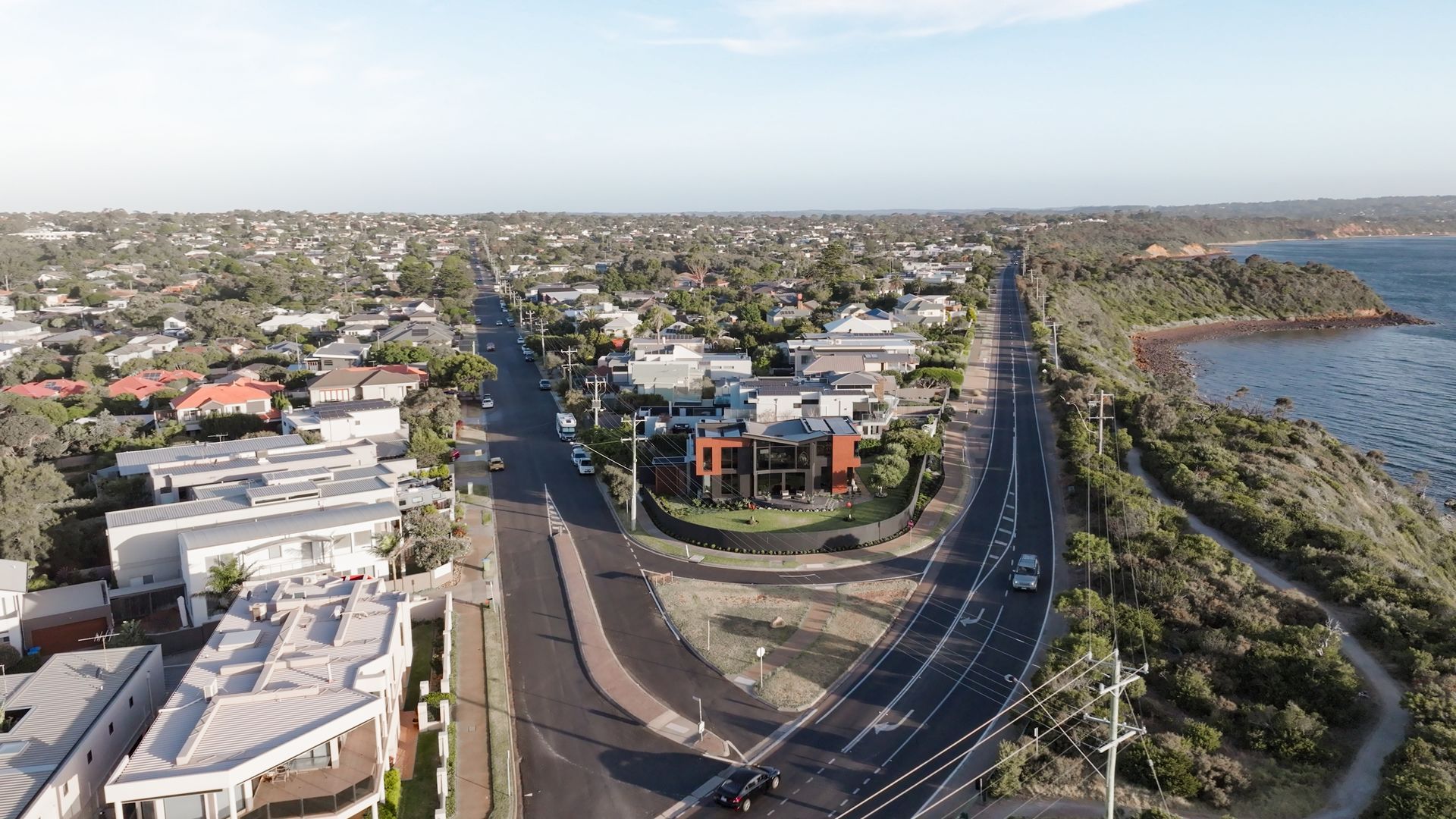 Modern transformation of an 80's brick veneer. Upper storey additions along with ground storey alterations create a minimalist style with beautiful views of Mornington village and Port Philip Bay.
