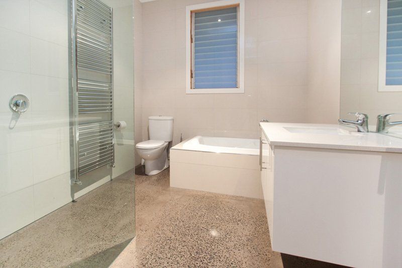 Polished concrete floors and large north facing double glazed windows and sliding doors.