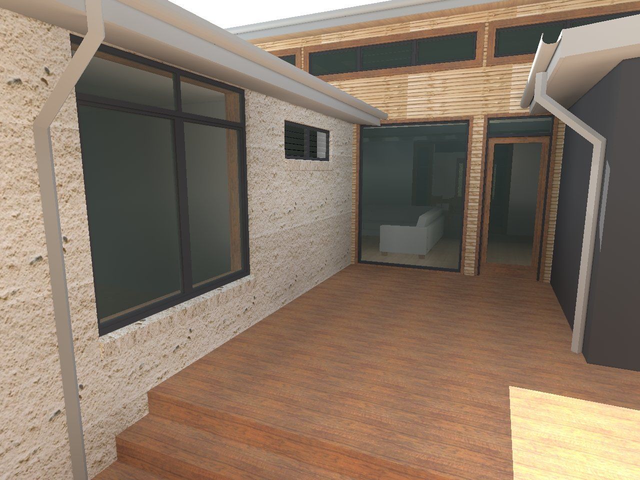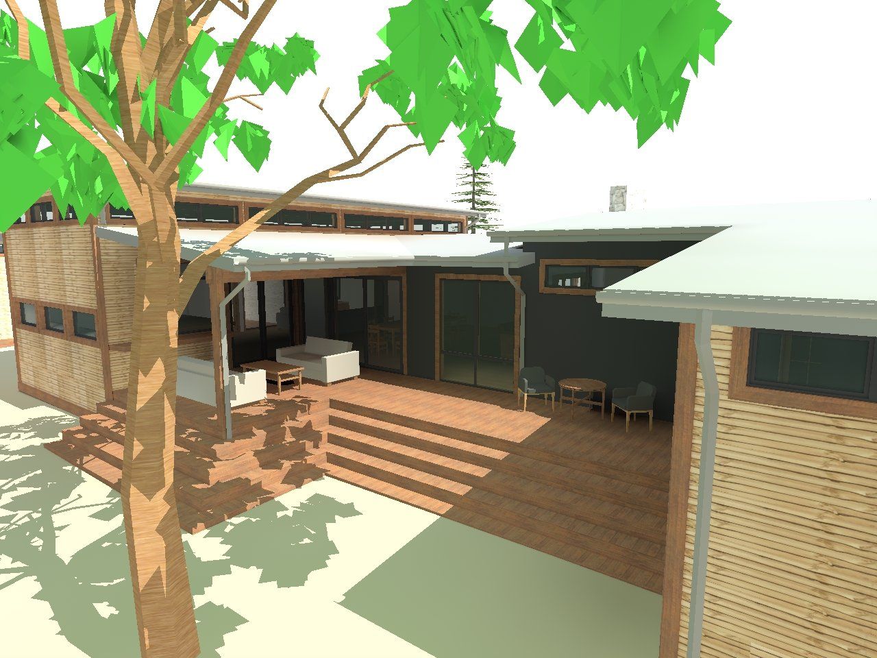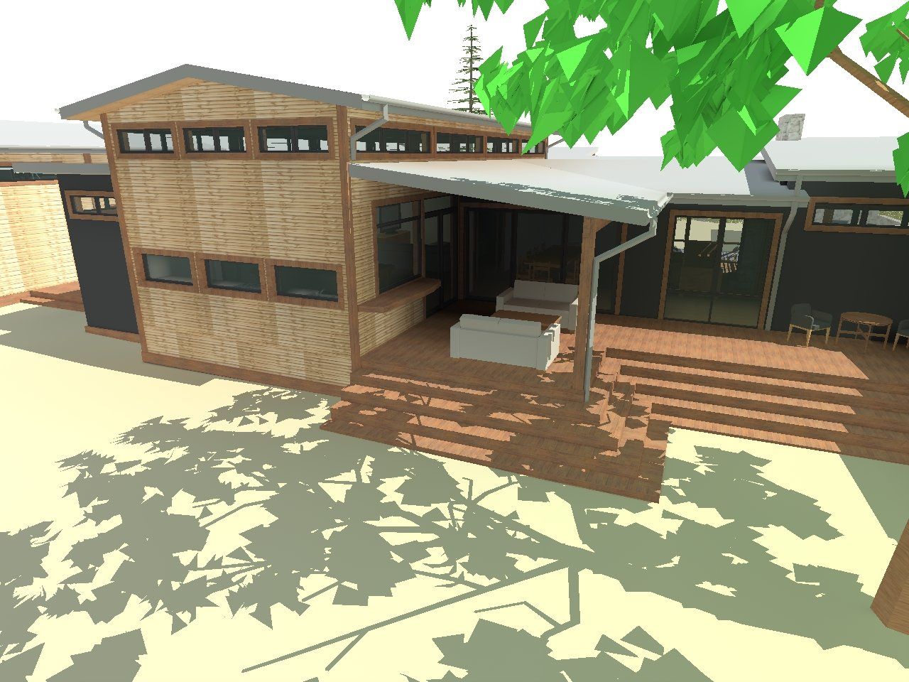 This Passive solar design at Ocean Grove utilises Northern penetrating sun in winter and shaded sun in summer. Natural and recycled materials are used for this addition/renovation with lime render and managed forest timber products. Existing brick walls are to be rendered with lime render to help link old and new with architectural repetition.