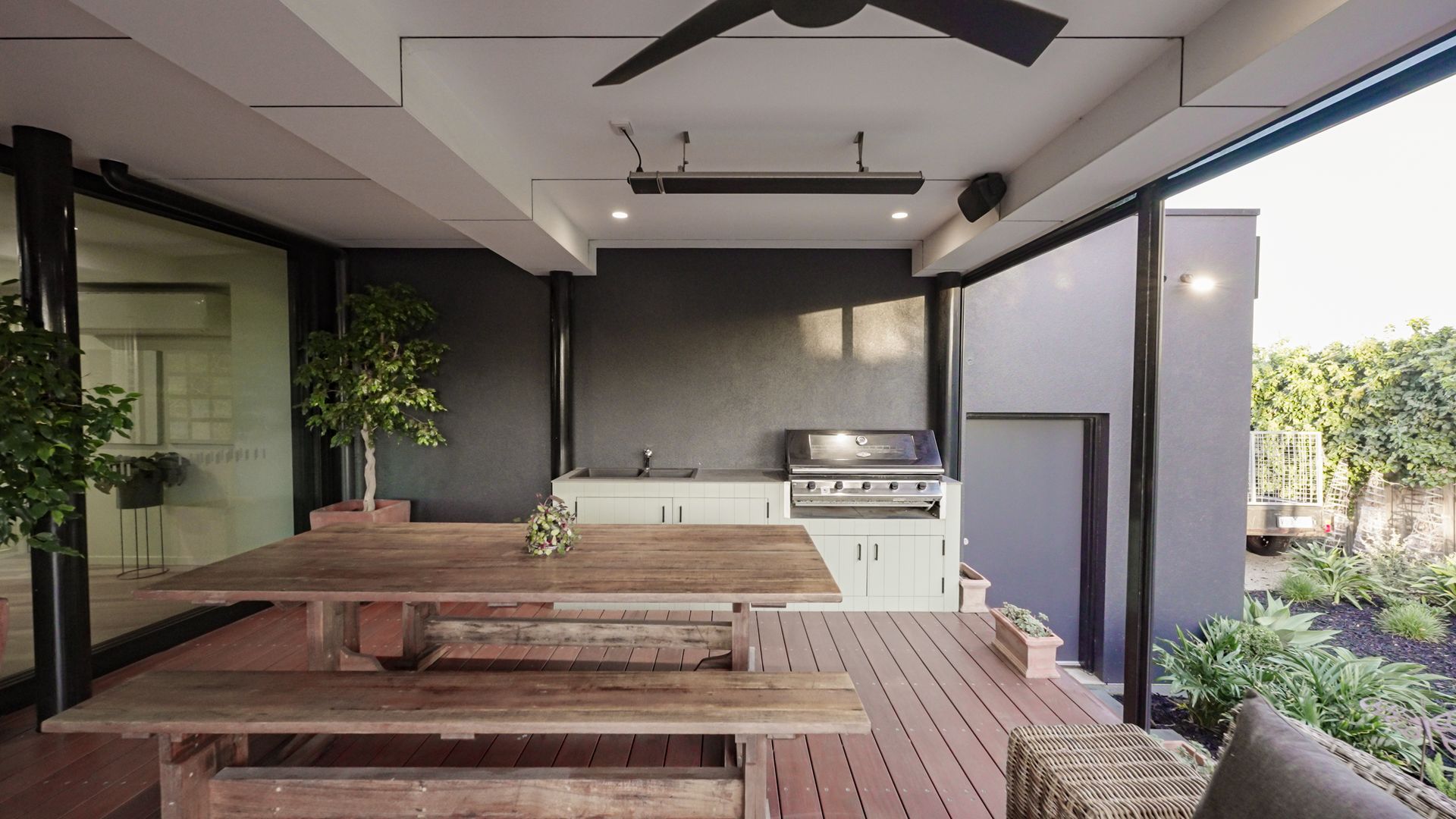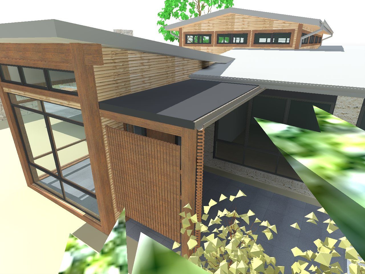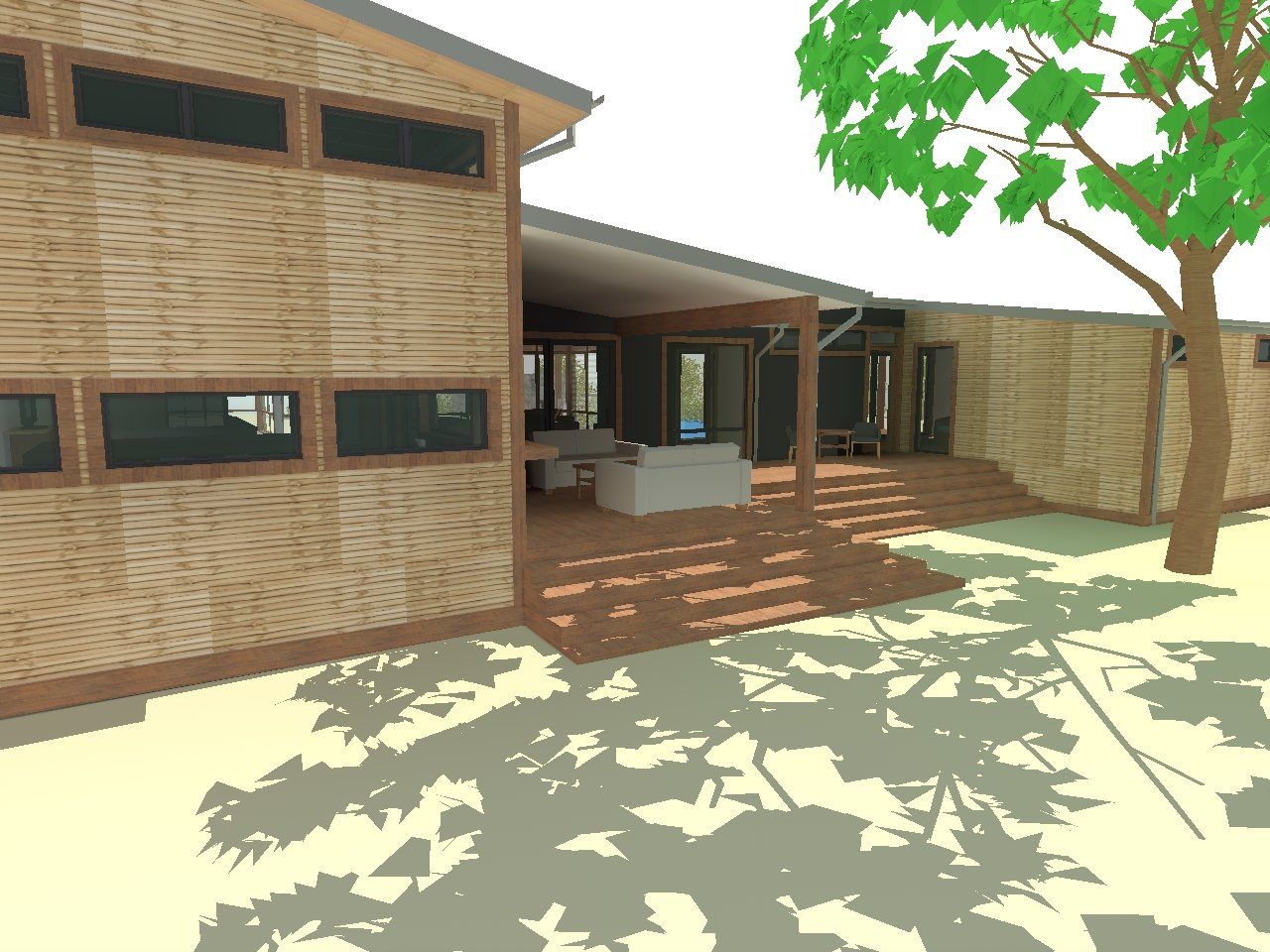 This Passive solar design at Ocean Grove utilises Northern penetrating sun in winter and shaded sun in summer. Natural and recycled materials are used for this addition/renovation with lime render and managed forest timber products. Existing brick walls are to be rendered with lime render to help link old and new with architectural repetition.