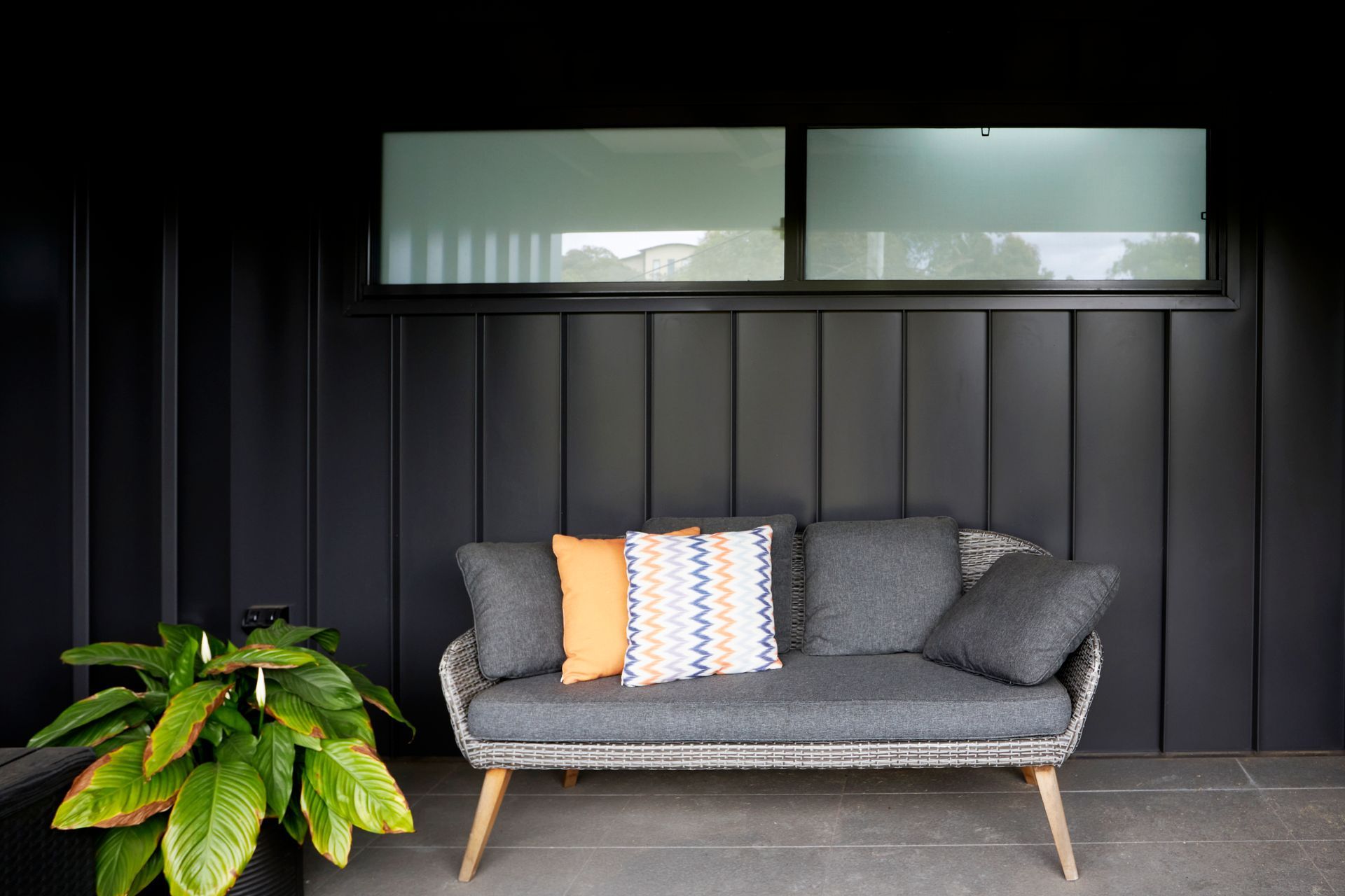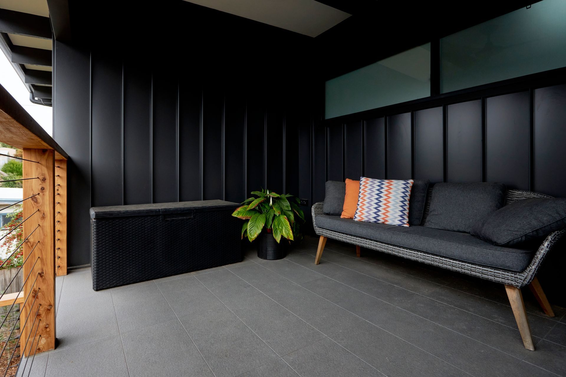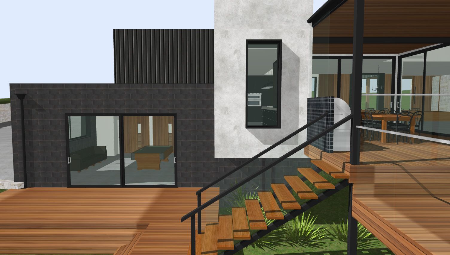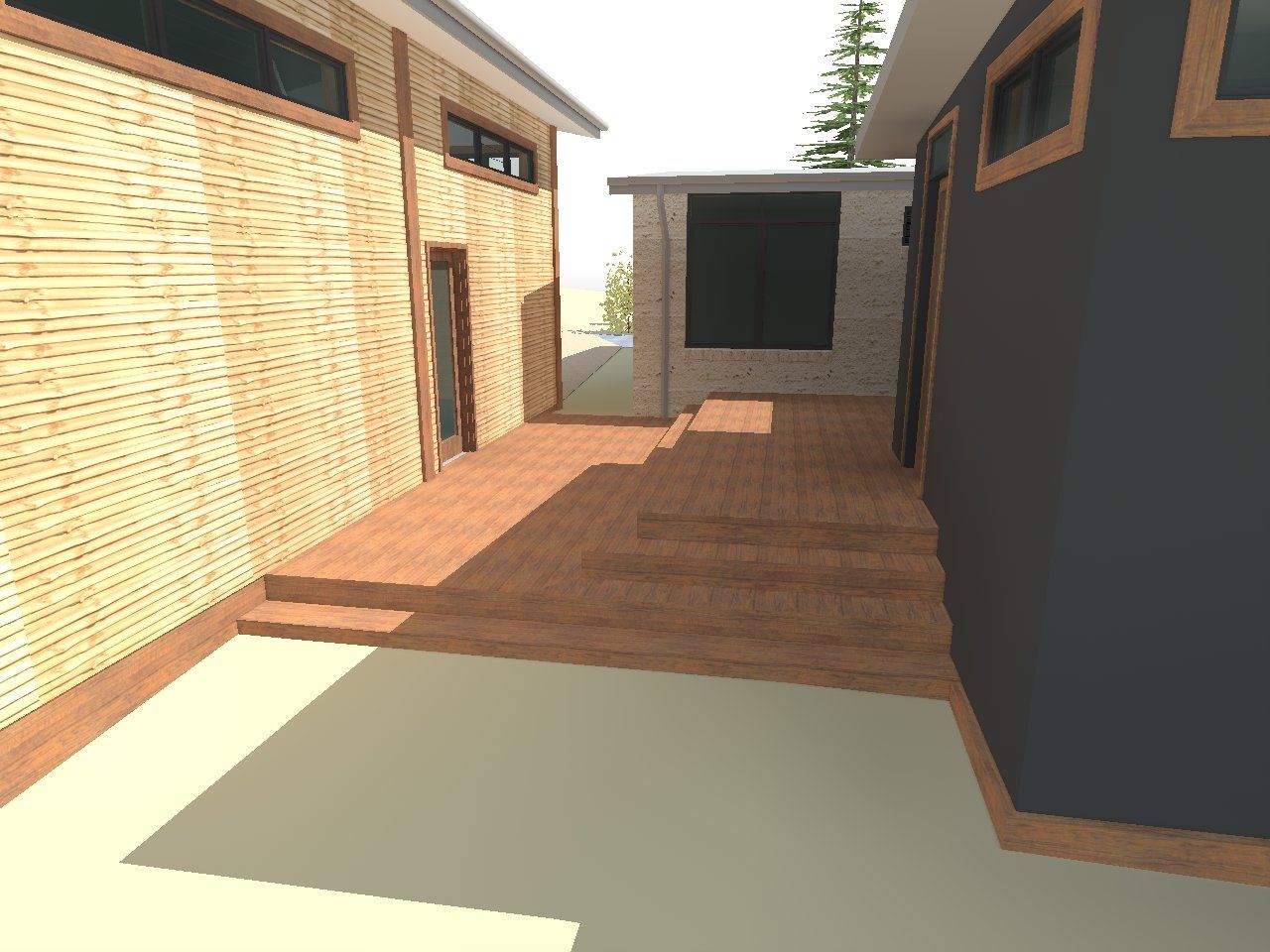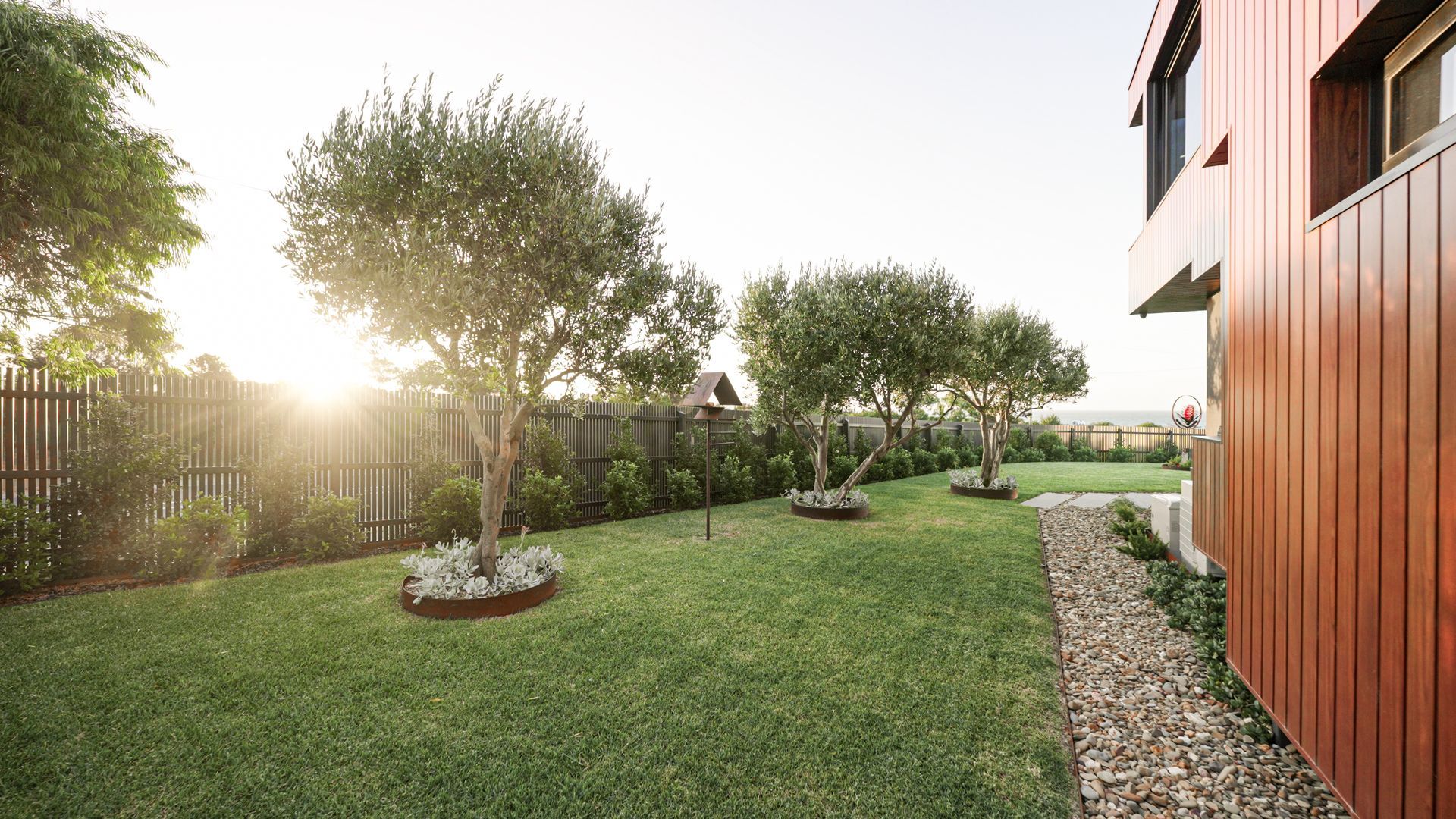 Exterior coated metal surfaces in Colorbond and Decoclad will stand the test of time and reduce maintenance in the long term.Timeless timber steps add colour balance to the darker materials.Cosy shady places for summer hide away. Fun spaces for interactive games. Recycled bricks add an organic flavour to walls.