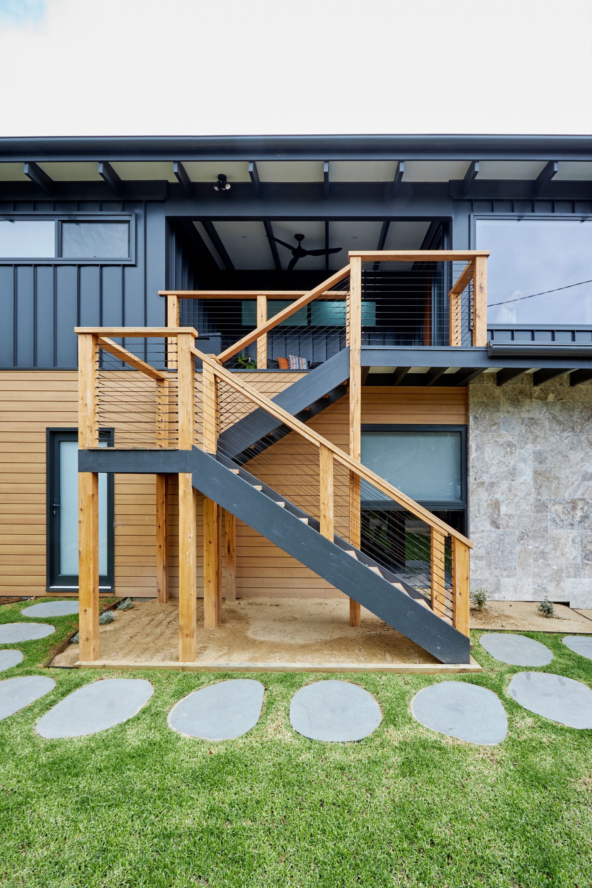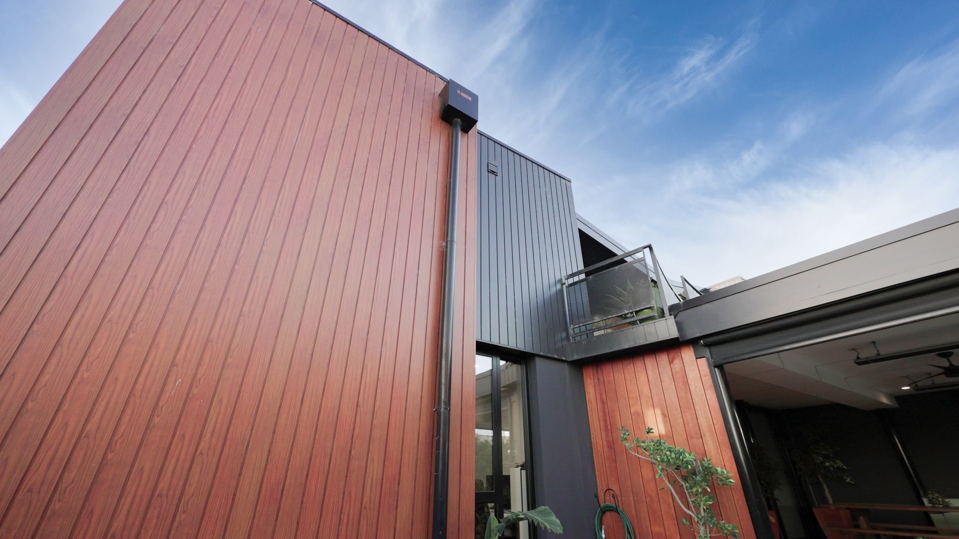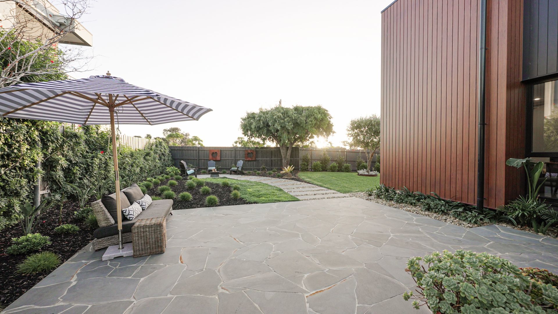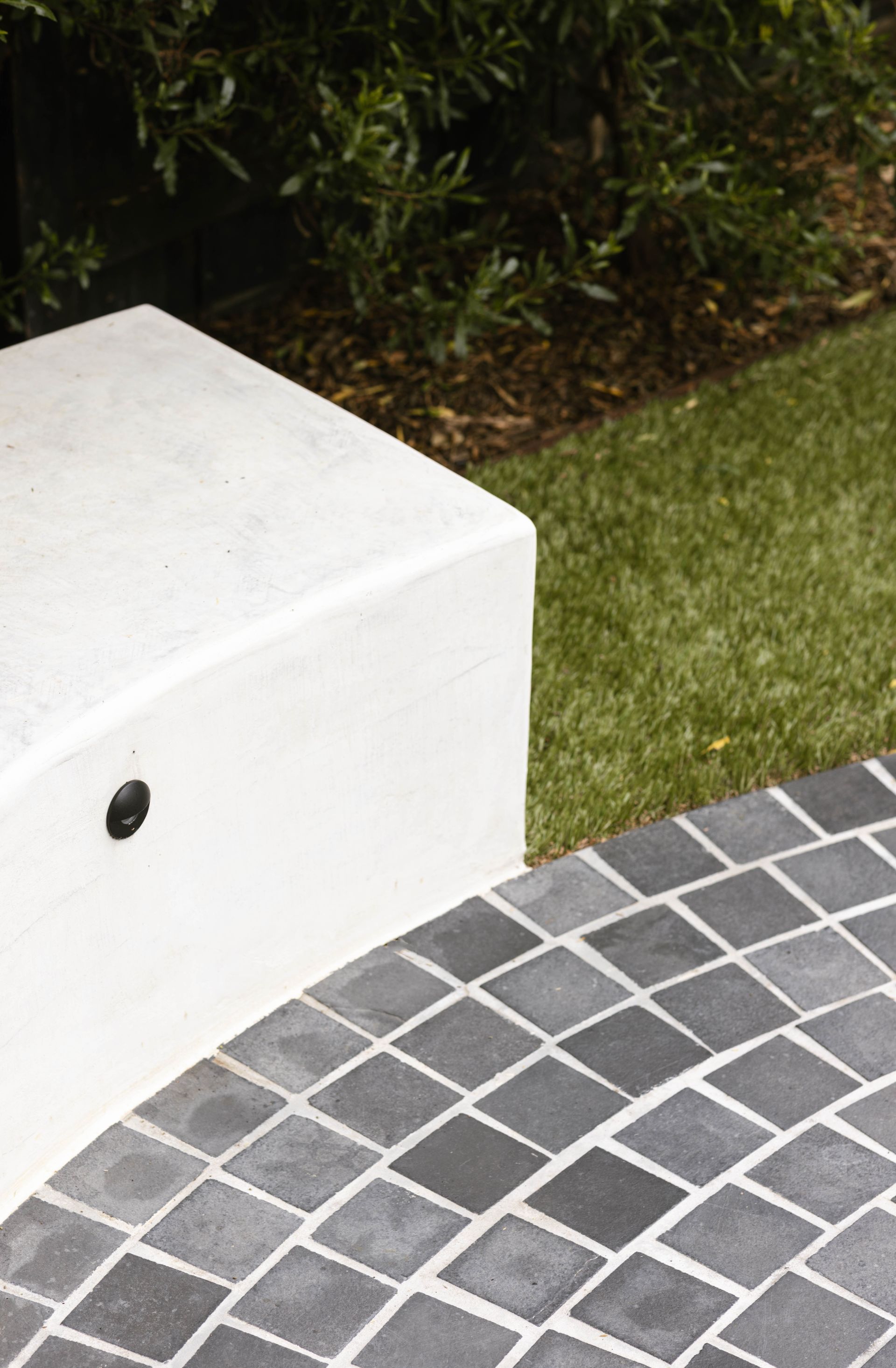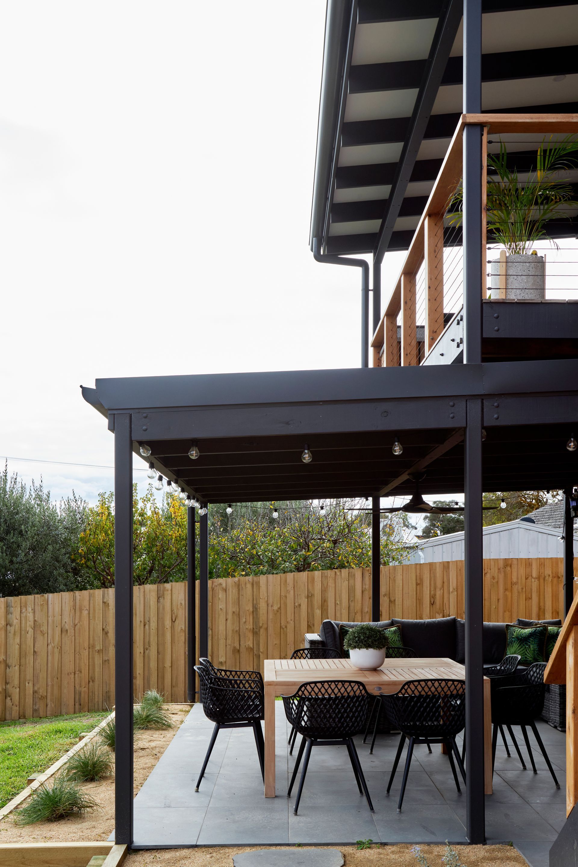 Exterior coated metal surfaces in Colorbond and Decoclad will stand the test of time and reduce maintenance in the long term.Timeless timber steps add colour balance to the darker materials.Cosy shady places for summer hide away. Fun spaces for interactive games. Recycled bricks add an organic flavour to walls.
