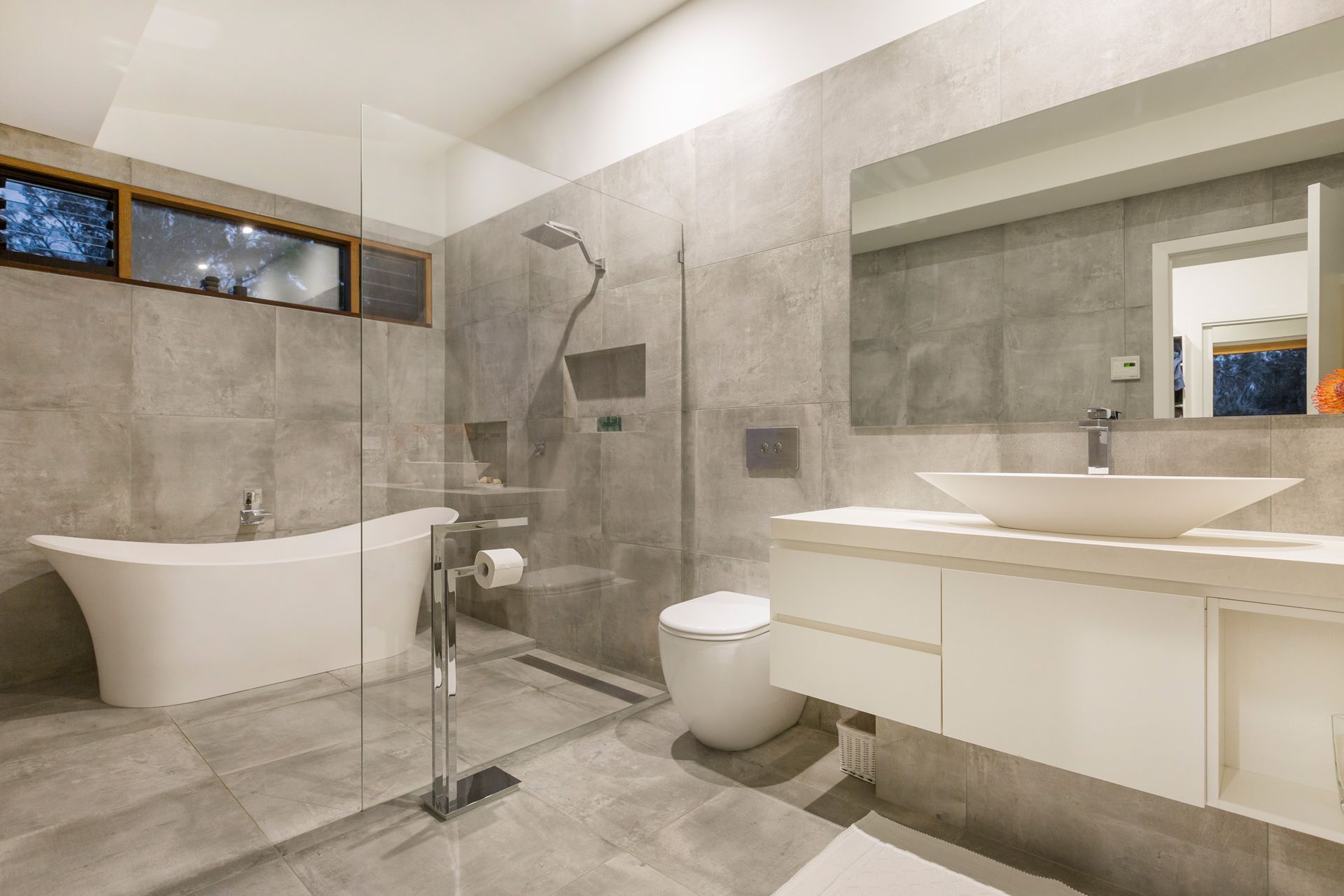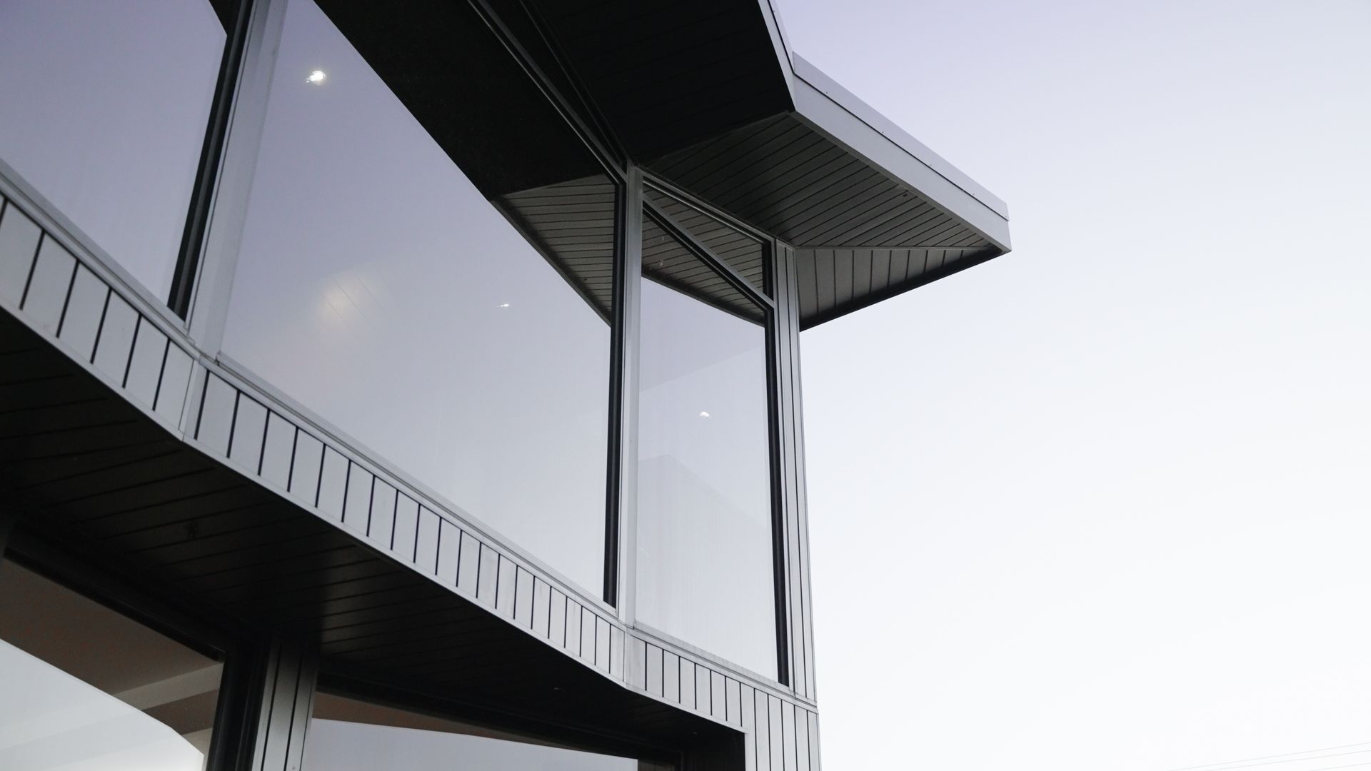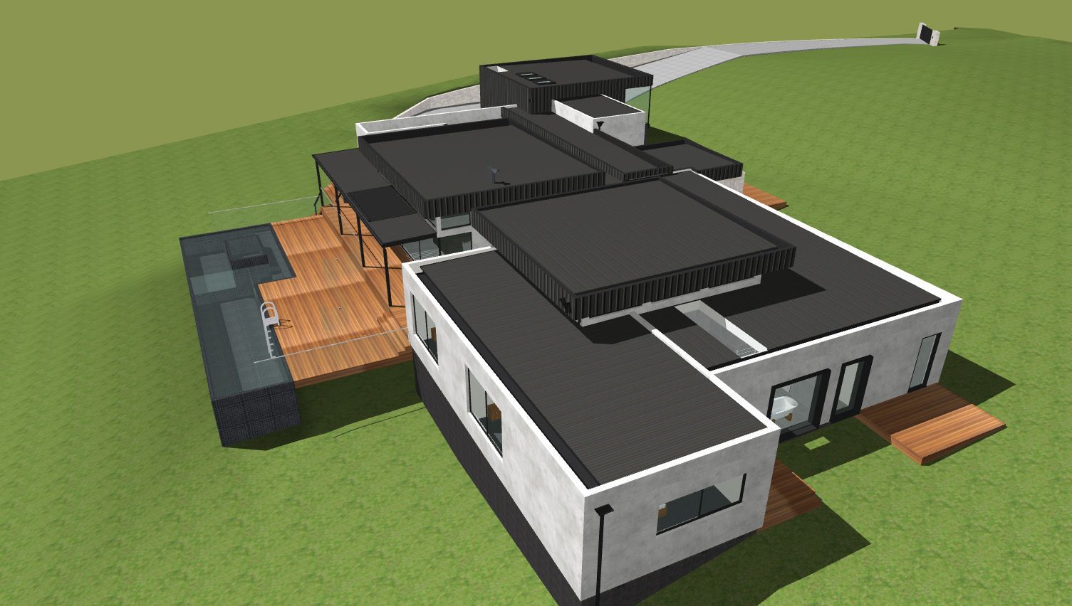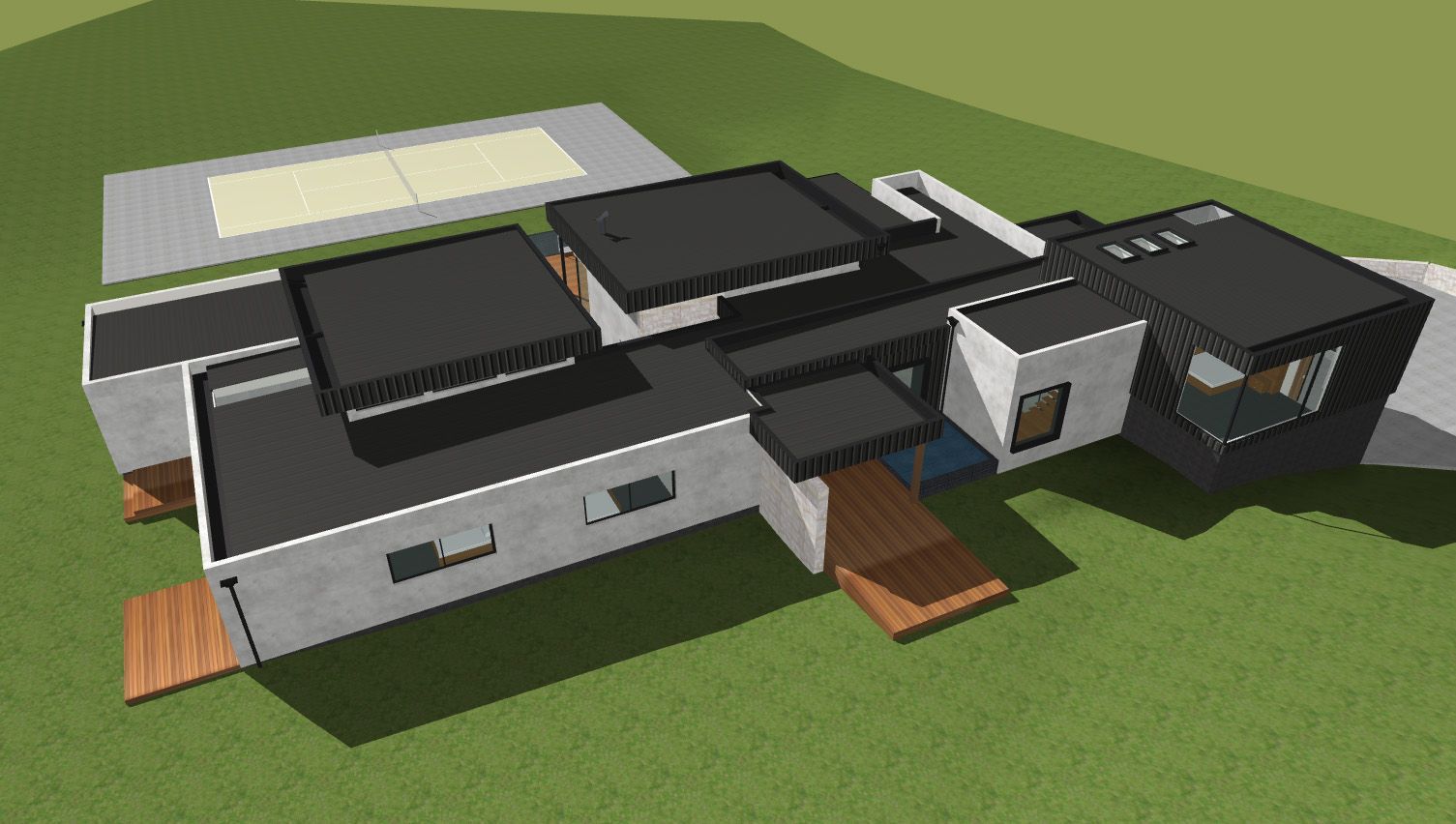 Luxury passive solar house currently under construction. Colorbond standing seam metal cladding, low c02 rendered foam board, timber decking from managed forests, grey designer blockwork by adbri.