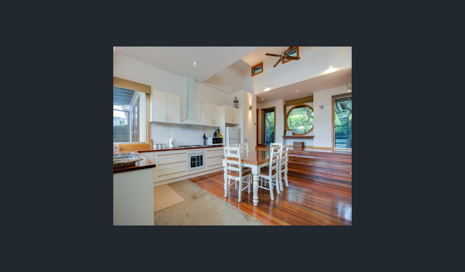Multi-level Limestone and render house with classic views of Port Phillip Bay and Bass Strait. Plenty of natural light reaches the inner living areas via a central stair well with hi-lite louvered ventilation windows. Hot air can escape in summer through the natural air tunnel in summer and controlled in winter with doors and reverse cycle ceiling sweep fans.